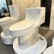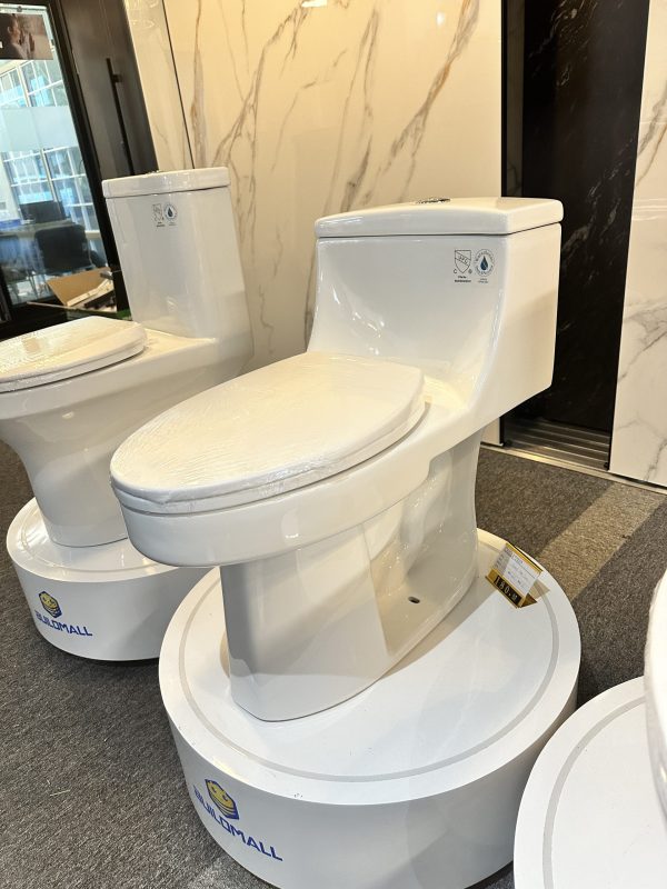 Compact one-piece ceramic toilet designed for modern bathrooms. Features efficient flushing and a soft-close seat for quiet, comfortable use.